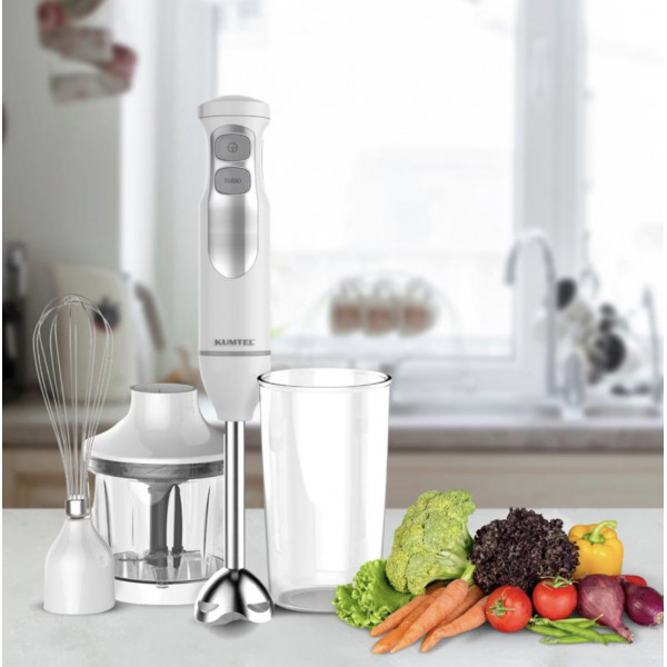 KUMTEL HHB-02 White — це сучасний занурювальний блендер, який поєднує стильний білий корпус, хорошу потужність і практичність у щоденному використанні на кухні. Модель придатна для приготування смузі, соусів, супів-пюре та інших кулінарних завдань.