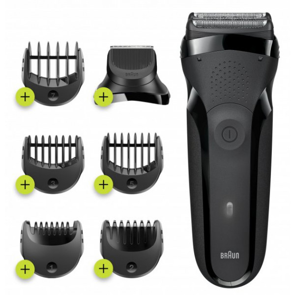 Для досягнення потрібного результату розробники обладнали Braun Series 3 300BT 5 насадками та тримером. З їх допомогою можна створювати унікальні образи, регулюючи довжину волосся. Завдяки сучасній системі кріплення насадки встановлюються легким рухом руки, а для їх очищення досить просто скористатися струменем води.