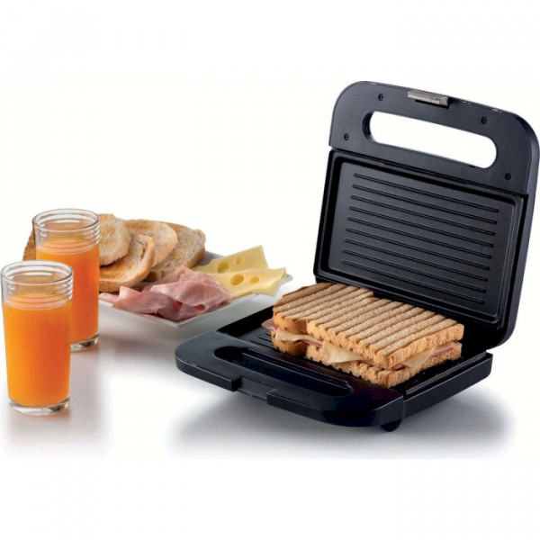 Ariete 1971 Black - відмінний варіант для дому, стильний прилад невеликого розміру, який чудово впишеться в будь-який сучасний інтер'єр і не займе багато місця. Пристосування у вигляді пластин з ребристою поверхнею, які при нагріванні залишають на поверхні продукту характерний малюнок у вигляді смажених, темних смуг – це чудова можливість запекти м'ясо, рибу або овочі-гриль, а також прогріти начинку закритих бутербродів, лавашів або паніні. Ручка зі спеціального матеріалу завжди залишається холодною, що виключає ризик одержати опік у процесі роботи, а міцний затискач-фіксатор попереджає розкриття пристрою. Невеликі габарити роблять зберігання девайса максимально зручним на кухні будь-яких розмірів. Можливість вертикального зберігання дозволять заощадити максимум простору.
