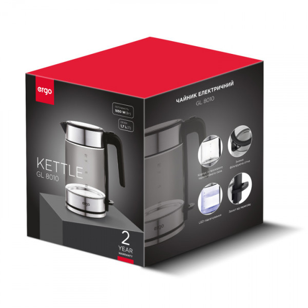 ERGO GL 8010 — це сучасний електрочайник, який поєднує елегантний дизайн, високу продуктивність і надійність у використанні. Його мінімалістичний зовнішній вигляд гармонійно доповнить будь-яку кухню, а зручна конструкція забезпечить комфорт під час щоденного користування.