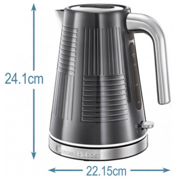 Russell Hobbs 25240-70 - електричний стильний чайник від компанії Russell Hobbs. Прилад оснащений багатьма корисними та доведеними до автоматизму функціями, які допоможуть більш ефективно експлуатувати його. Автоматична система відкриття кришки, автоматичне відключення після закипання, а також багато іншого вплинули на те, що дана модель чайника є однією з найбільш популярних серед користувачів. Зовні корпус чайника оснащений стильними геометричними лініями.Технічні характеристики