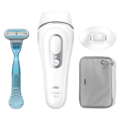 Фотоепілятор Braun Silk expert Pro 3 - це прилад для видалення небажаного волосся на тілі та обличчі в домашніх умовах. Він оснащений технологією інтенсивного імпульсного світла, яка дає змогу видаляти волосся без болю та подразнення шкіри.