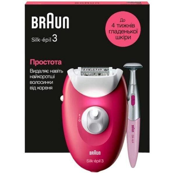 Малиновий жіночий епілятор Braun Silk-epil 3 SE 3-202 використовується для делікатного усунення небажаних волосків.