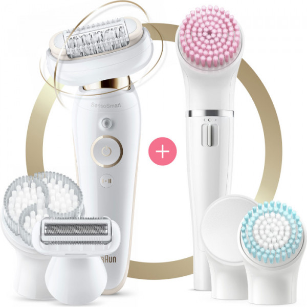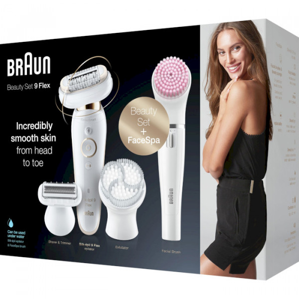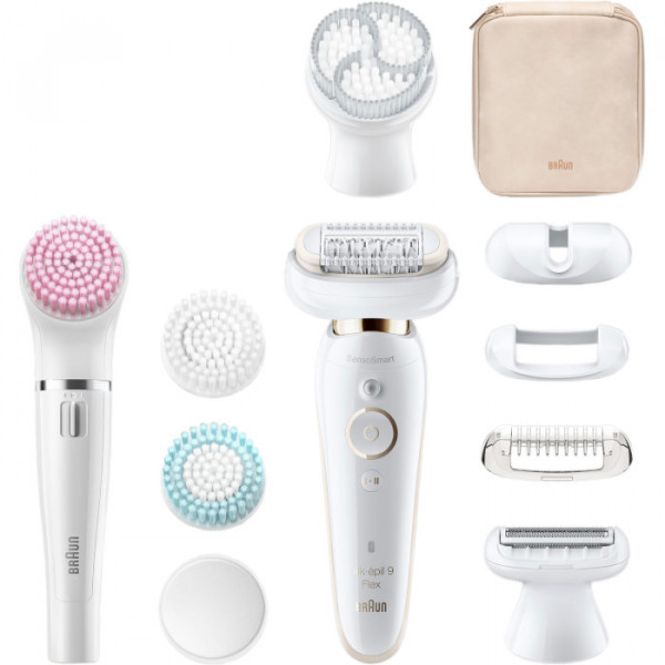 Епілятор Braun Flex 3D SES 9100 SkinSpa SensoSmart є індивідуальний спа-комплекс, а не тільки прилад для видалення волосся. Комплектація розширена за рахунок наступних інструментів: насадки-щітки для делікатного пілінгу; приладу для очищення обличчя (зі щіточками для звичайної і глибокого чищення особи, щіточкою для чутливої шкіри та насадкою-губкою). Крім того, разом з пристроєм місце ви отримуєте косметичку та щіточку для сервісного чищення самих насадок.