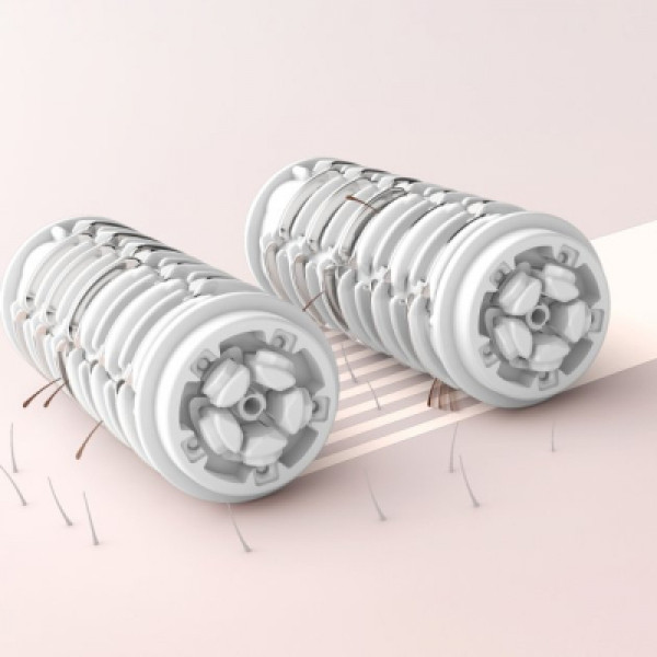 Подвійні диски дають змогу зрізати залишкові волоски, оскільки другий диск захоплює волоски, пропущені першим диском. Усього використовується 60 мікропінцетів, які захоплюють волосся, що є наступним етапом розвитку епіляції. Це допомагає зрізати більше волосків за один раз.