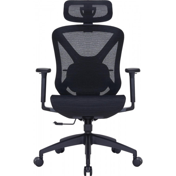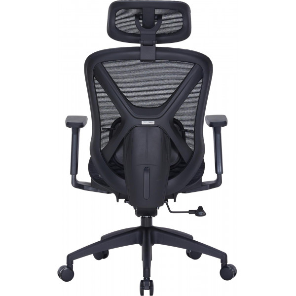 Крісло має систему підтримки попереку з регулюванням по висоті, що сприяє анатомічно правильному положенню тіла під час тривалого сидіння. Регульований підголівник додатково піклується про комфорт шиї та голови.