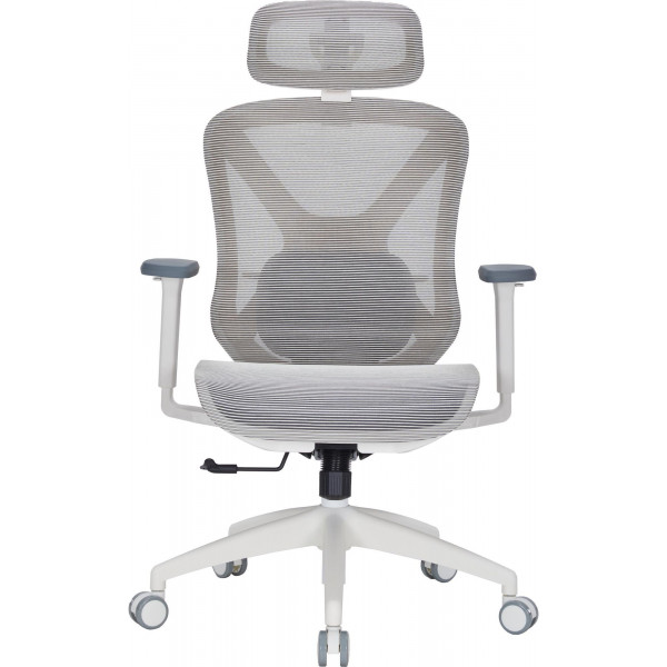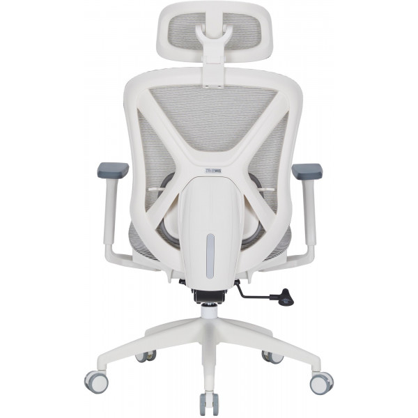 Крісло має систему підтримки попереку з регулюванням по висоті, що сприяє анатомічно правильному положенню тіла під час тривалого сидіння. Регульований підголівник додатково піклується про комфорт шиї та голови.