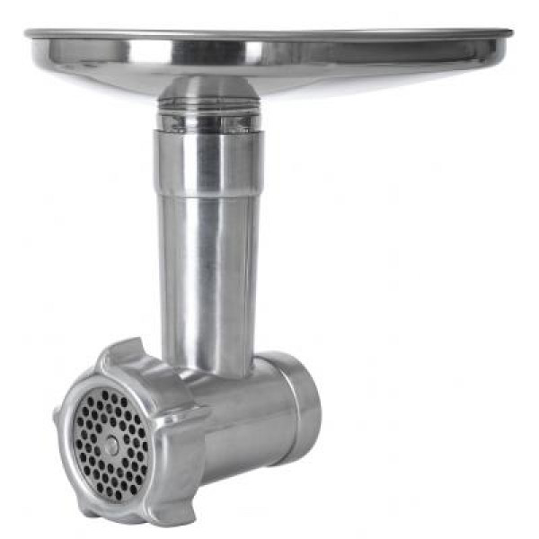 Насадка - м'ясорубка. Перетворіть кухонну машину ERGO КМ-1555 в м'ясорубку, приєднавши до неї потрібну насадку. Насадка здатна швидко перемолоти м'ясо в якісний однорідний фарш, з якого легко приготувати соковиті апетитні котлети, тефтелі або м'ясну запіканку.