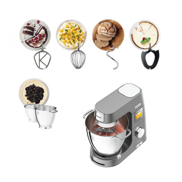 Комплект поставки включає всі необхідні для роботи аксесуари. Наявність двох чаш Nesting DuoBowl об'ємом 5 і 7 л дає можливість одночасно готувати кілька страв. Технологія планетарного змішування забезпечує рівномірний і якісний заміс вмісту за рахунок зустрічного обертання насадки і чаші міксера. Змінити насадку одним легким рухом дозволяє запатентована фірмова технологія TWIST.