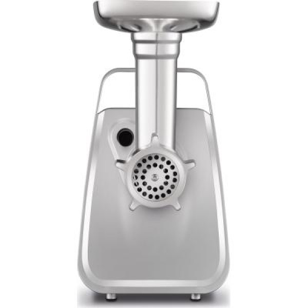 Для цього м'ясорубка оснащена 6 робочими насадками, включаючи 3 перфорованих диска для дрібного, середнього і великого подрібнення, 2 барабана для натирання і шинкування, а також універсальною насадкою для наповнення ковбасок.
