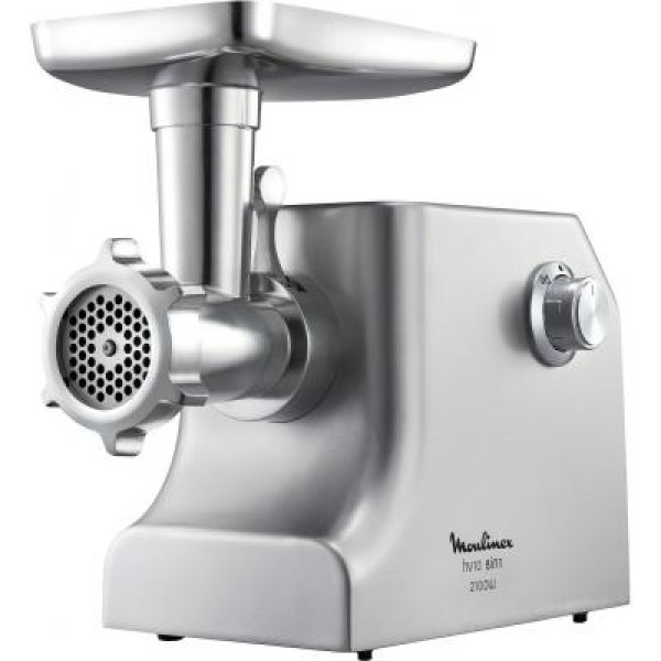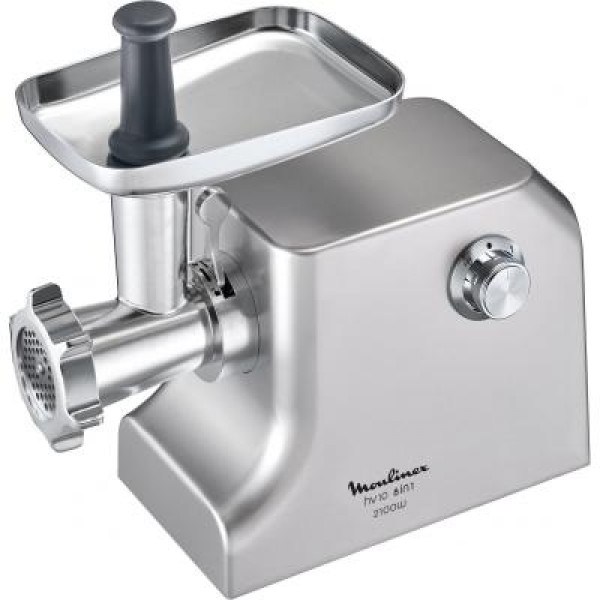 Moulinex ME858D32 дозволяє перетворювати в фарш будь-які види м'яса. Корпус і лоток даного приладу зроблені з нержавіючої сталі, що відрізняє високу зносостійкість.