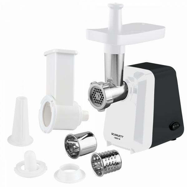 Scarlett SC-MG45M18 укомплектована дисками для фаршу з різним діаметром отворів, що забезпечують ідеальне подрібнення продукту; тертками-шинкування для подрібнення овочів, а також насадками для приготування домашніх ковбасок і кеббе (тонких сосисок). Залишається лише фантазувати з наповнювачами та смачні делікатеси вже на столі.