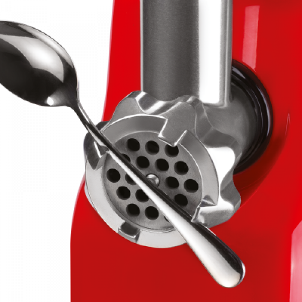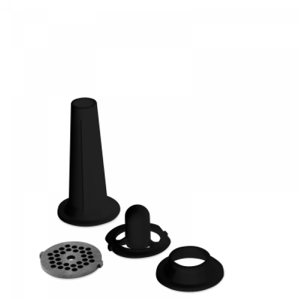 В комплекті 4 насадки: 2 перфоровані решітки з отворами 7 і 5 мм, насадки для кеббе та для приготування домашньої ковбаси.
