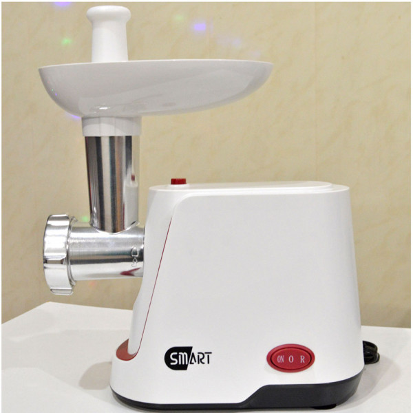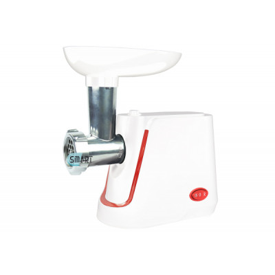 Електрична м'ясорубка Smart MG-1013R білого кольору допоможе вам зробити фарш практично з будь-яких продуктів. Вона з легкістю перемеле м'ясо, рибу і гриби, дозволить нарізати різні овочі і фрукти, використовуючи, три різні барабана в комплекті і навіть попрацює в якості шнекової соковижималки.
