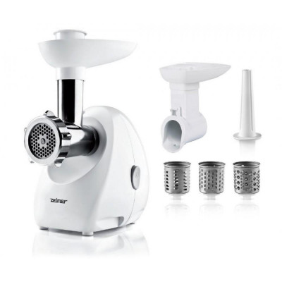 Розширити її функціональні можливості допомогла багата комплектація, в якій Ви знайдете три перфоровані решітки для фаршу, насадку для приготування ковбасок, кеббе, три барабана овочерізки. Не менш знадобиться в процесі роботи з Zelmer ZMM4048W функція реверсу, пластиковий лоток і штовхач.
