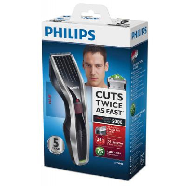 Всі продукти PHILIPS по догляду для чоловіків створені для тривалої і надійної служби. У всіх країнах на них поширюється гарантія, а також вони підтримують напруги різних стандартів. Зареєструйте машинку для стрижки волосся PHILIPS HC5440/15 на веб-сайті www.philips.com/5years та отримайте 5-річну гарантію для будь-якої країни: 3 додаткових роки до стандартної 2-річної гарантії Philips.