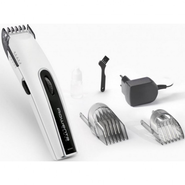 Енергоживлення і керуванняЖивлення машинки для стрижки Rowenta може проводитися від стандартної електромережі напругою 220 В або від акумулятора. Прилад може працювати автономно протягом 40 хвилин. Управління машинкою для стрижки здійснюється за допомогою кнопки, розташованої на корпусі приладу.