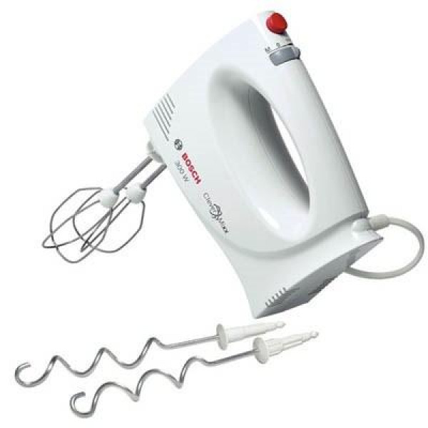 Ручний міксер Bosch MFQ3030 працює на 4-х швидкостях, оснащений двигуном потужністю потужність - 350 Вт. Дана модель виконує дві основні функції: заміс і збивання. У стандартну комплектацію входять дві насадки: віночок для збивання і гак для замішування тіста. Кнопка-замок допоможе легко і швидко від'єднати і змінити насадки. Догляд за міксером не складе труднощів, насадки можна мити в посудомийній машині. Дана модель стане вашим вірним помічником на кухні, з ним будь-яка випічка, будь-який десерт буде вам під силу.