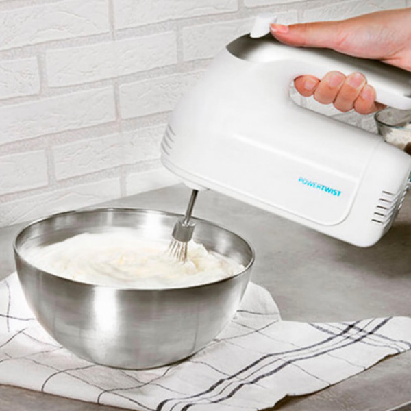 Міксер CECOTEC PowerTwist 500 має 3 насадки, за допомогою яких ви можете готувати величезну кількість страв! Всі насадки виготовлені з неіржавкої сталі. Вінчикоподібна насадка буде ідеальною для приготування кремів, соусів і збивання вершків у ніжну піну. Подвійна насадка підійде для однорідного змішування інгредієнтів, а гачкоподібна — для приготування тіста.