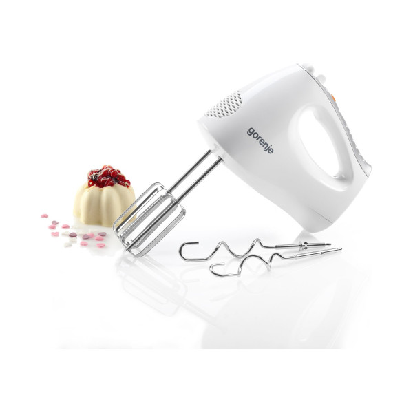 Міксер Gorenje M 450 WS укомплектований двома парами насадок з нержавіючої сталі. Пара віночків призначена для збивання різних соусів і кремів. Для замішування тіста використовується пара спеціальних насадок-гаків. Витяг насадок відбувається автоматично при натисканні кнопки.