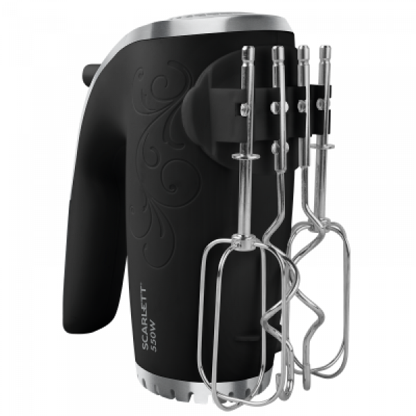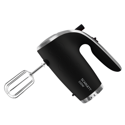 Ручний міксер Scarlett SC-HM40S09 ефективно впорається з замішуванням тіста або приготуванням крему для торта. Міксер укомплектований 2 віночками для збивання вершків і яєць і 2 насадками-гаками для замішування тіста, які кріпляться безпосередньо на прилад, забезпечуючи компактне зберігання. Корпус міксера виконаний з високоякісного пластику. Перемикач швидкостей в діапазоні від 1 до 5 і кнопка від'єднання насадок зручно розташовані на ручці приладу.