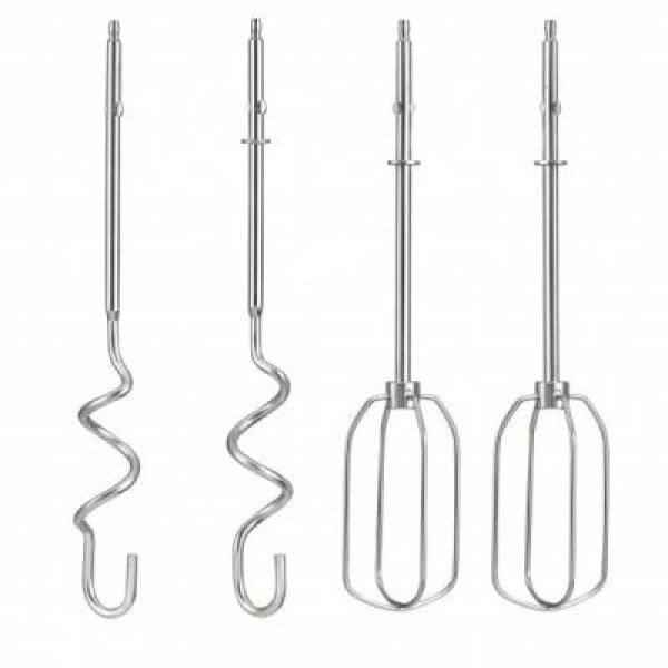 Кожен раз відмінний результат з п'ятьма швидкостями і функцією Turbo. У комплекті до міксера йдуть дві пари насадок з нержавіючої сталі: перша пара віночків призначена для збивання всіляких кремів, соусів, рідкого тіста для випічки бісквіта; друга пара насадок, виконана у вигляді гаків, допоможе якісно, швидко і легко замісити тісто для піци, хліба або кексів.