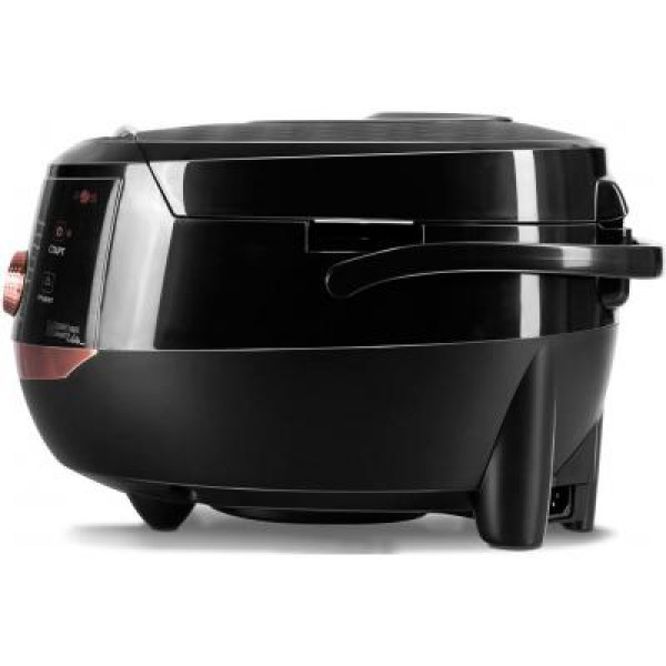 Як під час готування на піднятому Тені, так і при приготуванні в чаші, доступні всі встановлені програми розумною мультикухни і програма ручного налаштування МУЛЬТИПОВАР з діапазоном регулювання температури від 35° до 180°С (крок 1°). А якщо ви купили продукти нової марки і вже під час готування помітили, що страва виходить не таким, як вам звично, використовуйте функцію МАСТЕРШЕФ Лайт. З її допомогою ви зможете змінити будь-яку вже запущену програму CBF391S – одне натискання кнопки, і мультикухня смарт вже не смажить, а гасить!