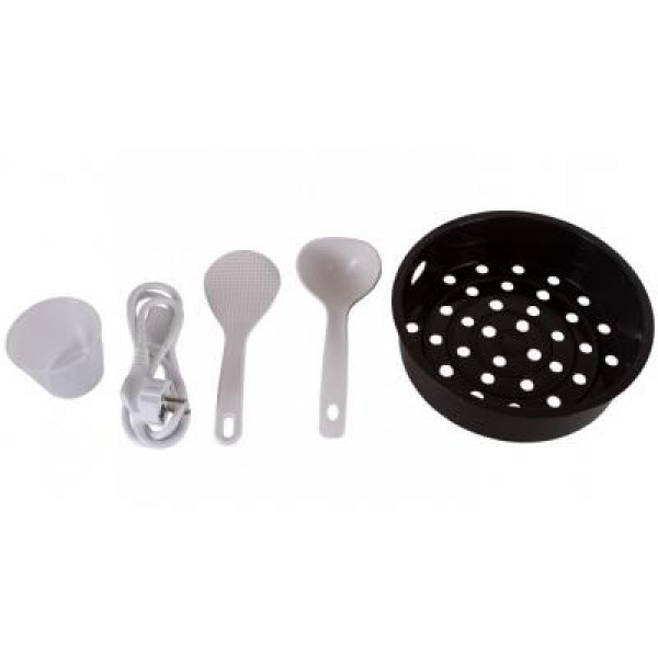 В комплекті все необхідне: парова корзина, рисова ложка, столова ложка, мірний стаканчик і книга рецептів.