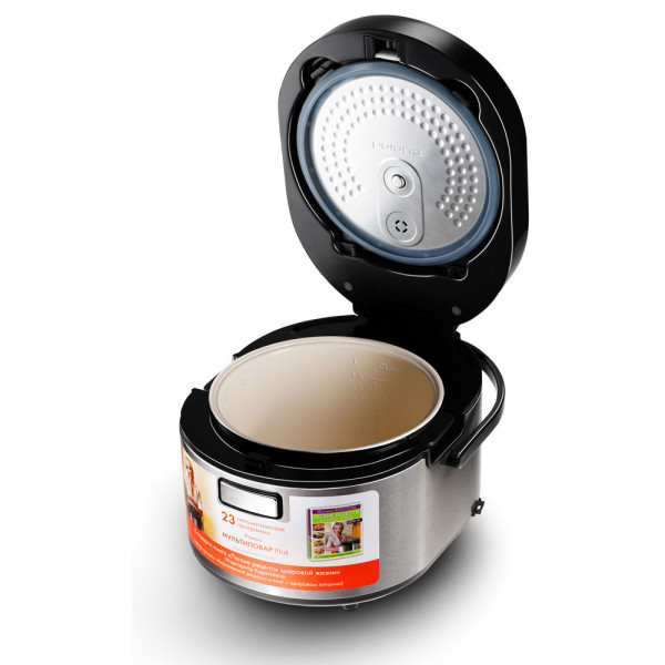 З покупкою мультиварки Polaris PMC 0523AD ви отримаєте чашу 5 л для приготування обідів і вечерь на всю сім'ю, мірний стакан і ложку, а також книгу рецептів для поповнення своєї колекції.