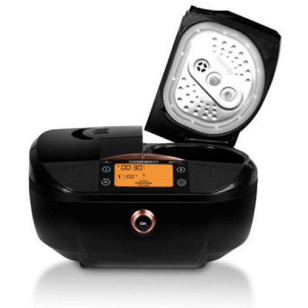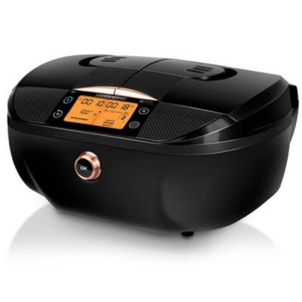 Захопитися досконалістю її зовнішнього вигляду і немислимими технічними можливостями! Мультиварка SkyCooker CBD100S з передовою конструкцією з двома чашами по 4,5 л може управлятися дистанційно з телефону завдяки зручному і інтуїтивно зрозумілому мобільному додатку R4S, а за рахунок використання новітніх енергозберігаючих рішень витрата електроенергії мінімальний. За допомогою програми можна: встановлювати час і програми, запускати приготування за рецептом в один дотик, змінювати температуру і час, коли працює програма (функція МастерШеф ЛАЙТ). Вбудований радіотюнер дозволить насолоджуватися не тільки кулінарним процесом, але і улюбленою музикою. 3D-нагрів гарантує рівномірне і швидке розподіл тепла, що означає ідеальне запікання продуктів. Для самих вишукувальних гурманів в моделі передбачені 50 програм приготування, а багатомовний інтерфейс говорить про універсальність застосування пристрою.