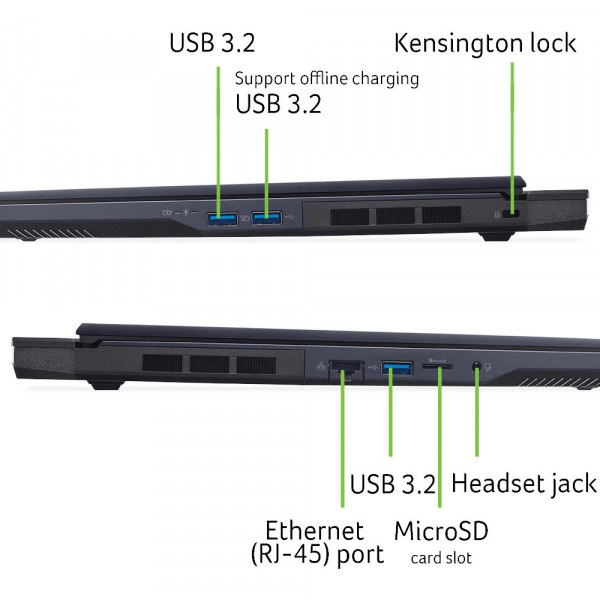 Для повного контролю над системою ноутбук оснащений утилітою PredatorSense, яка дозволяє налаштовувати режими продуктивності, швидкість вентиляторів і RGB-підсвічування клавіатури в чотирьох зонах. Унікальні функції Experience Zone, такі як PurifiedView для автоматичного кадрування та PurifiedVoice 2.0 із трьома мікрофонами для шумозаглушення, покращують якість відеодзвінків і стрімінгу.