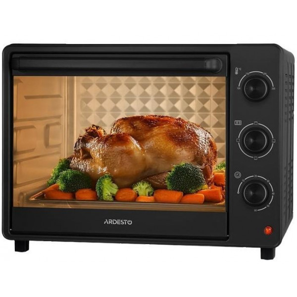 ARDESTO MO-T32B має зручну панель керування з механічними перемикачами, що дозволяють вибирати час і температуру приготування. Скляні дверцята дають змогу контролювати процес без відкривання камери, зберігаючи тепло і забезпечуючи рівномірне прогрівання страв.