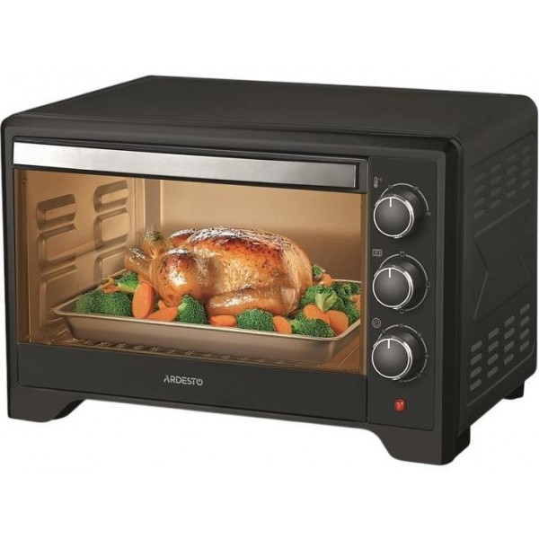 ARDESTO MO-T33B має зручну панель керування з механічними перемикачами, що забезпечують точне налаштування температури та часу. Скляні дверцята дозволяють контролювати процес приготування без втрати тепла, а компактні розміри роблять пристрій зручним для будь-якої кухні.