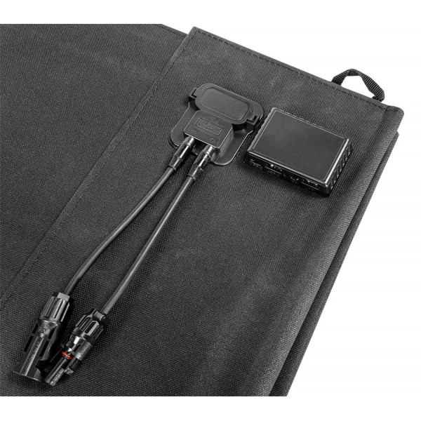 Складана конструкція дозволяє легко транспортувати панель і швидко розгортати її на місці. Міцний корпус стійкий до впливу ультрафіолету та механічних пошкоджень, що гарантує тривалий термін служби навіть при активному використанні. Завдяки ергономічній ручці та невеликій вазі панель зручно брати із собою в дорогу або на природу.
