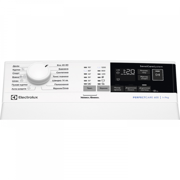 Пральна машина з вертикальним завантаженням макс. 7 кг, інверторний двигун, прання вовни, система SensiCare, опція "М'якість +"