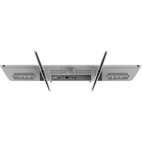 Преміальний безрамковий дизайн та розкішні металеві фактури телевізора стануть прикрасою вашої кімнати.