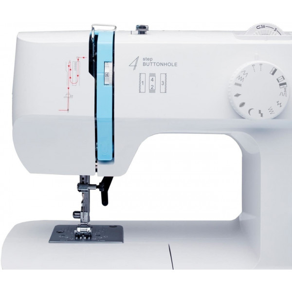 Продумана конструкція гарантує стабільність і довговічність. Металевий внутрішній каркас забезпечує надійність механізму, а компактні розміри дозволяють легко розмістити машину на робочому столі або зберігати її після використання. Якісне підсвічування робочої зони забезпечує чудову видимість навіть при слабкому освітленні.