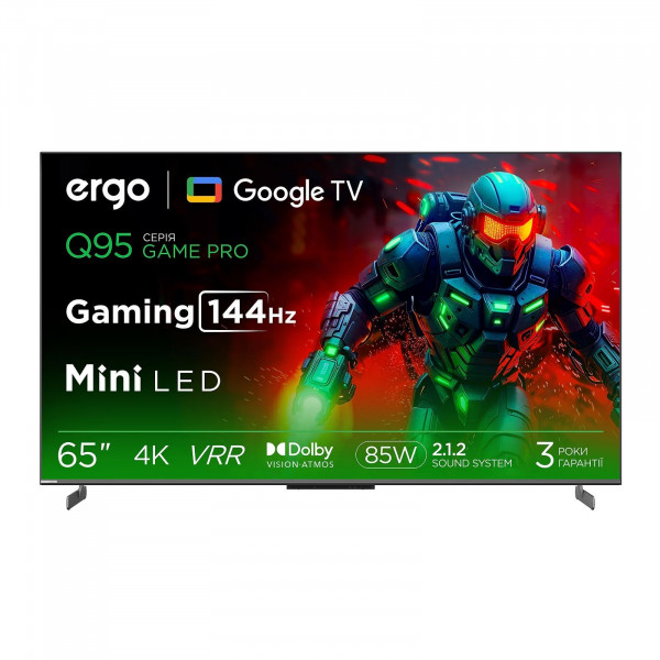 ERGO 65MQ95 — це сучасний телевізор, що поєднує високу якість зображення, продуману функціональність та стильний вигляд. Він стане центром розваг у вашому домі та подарує новий рівень комфорту під час перегляд