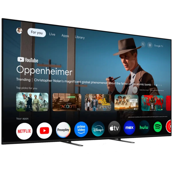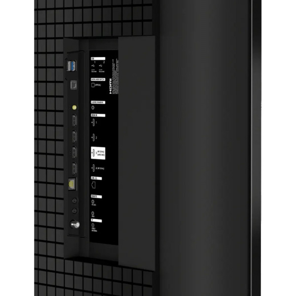 Телевізори мають мінімалістичний дизайн з тонкими рамками, що робить екран домінуючим елементом. Підключення включає кілька HDMI-портів, USB, Ethernet та Wi-Fi, з підтримкою Bluetooth для бездротових пристроїв. Енергоефективність та екологічні матеріали додають практичності для щоденного використання.