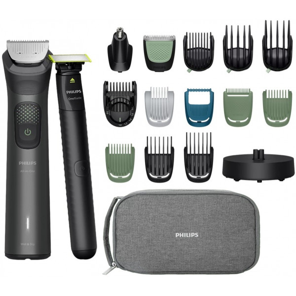 Тример Philips All-in-One Trimmer 9000 Series (MG9556/15) — це універсальний пристрій для повного догляду за волоссям і бородою, який поєднує в собі 19 інструментів для підрівнювання бороди, стайлінгу, стрижки волосся на голові та гоління тіла. Завдяки цьому ви отримуєте все необхідне для комфортного та точного догляду в одному наборі.