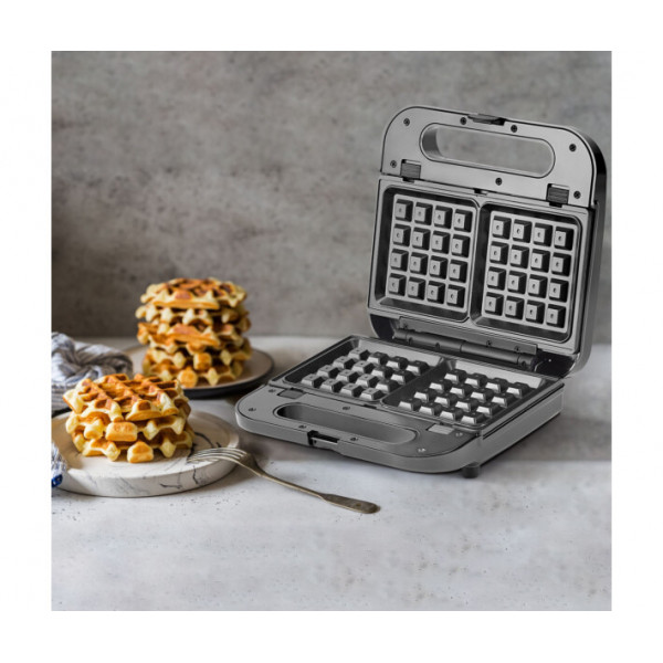 З Vitek VT-7148 користувач отримує 4 комплекти змінних пластин, кожна з яких має антипригарне покриття. Пластини легко миються будь-яким звичним миючим засобом і не вимагають особливого догляду. За допомогою цього мультіпекаря можна приготувати дуже смачні товсті вафлі, горішки з начинкою, будь-які продукти на грилі, а також сендвічі будь-якої складності. Кращий варіант для сніданку в колі сім'ї або близьких друзів і відмінне рішення, якщо потрібно швидко приготувати щось до чаю, коли гості стали сюрпризом.