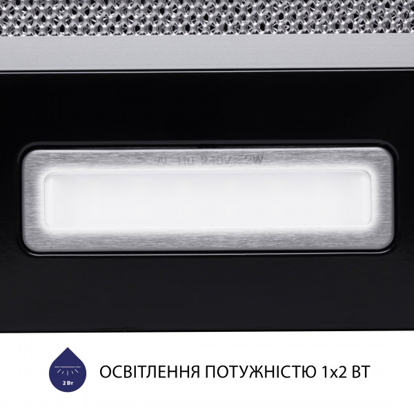 Освітлення витяжкою - опція, яка допоможе не використовувати додаткові джерела світла. Лампа потужністю 2 Вт вельми енергоефективна і яскрава одночасно.